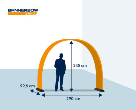 Betreten Sie neue Wege Ihrer Unternehmenspräsentation. Das Bannerbow®-Präsentationssystem gibt Kundenveranstaltungen oder Auftritten auf der Messe eine besondere Wirkung. Das einfach aufzubauende und leicht zu transportierende Bannersystem bietet neue kreative Wege zur Raumgestaltung und zur Gewinnung von Aufmerksamkeit. Bannerbow® small eignet sich auch als auffällige Alternative zu Roll-Up oder Isoframe und hat mit 2,90 Meter Breite sowie 2,45 Meter Höhe und 1,00 Meter Tiefe
